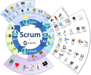 SCRUM es un «marco de trabajo para la gestión y desarrollo de software basada en un proceso iterativo e incremental utilizado comúnmente en entornos basados en el desarrollo ágil de proyectos». Aunque Scrum estaba enfocado a la gestión de procesos de desarrollo de software, puede ser utilizado en otro tipo de proyectos.